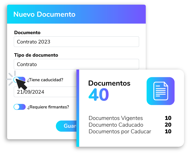 Configura la caducidad de los documentos o contratos de los colaboradores. Controla su vigencia y mantén todos los documentos al día.