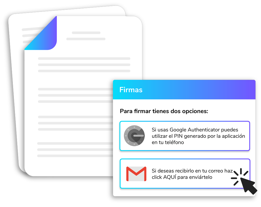 Visualiza y revisa el documento. Si estás de acuerdo, solicita tu pin de confirmación a través de correo o Google Authenticator para proceder con la firma.
